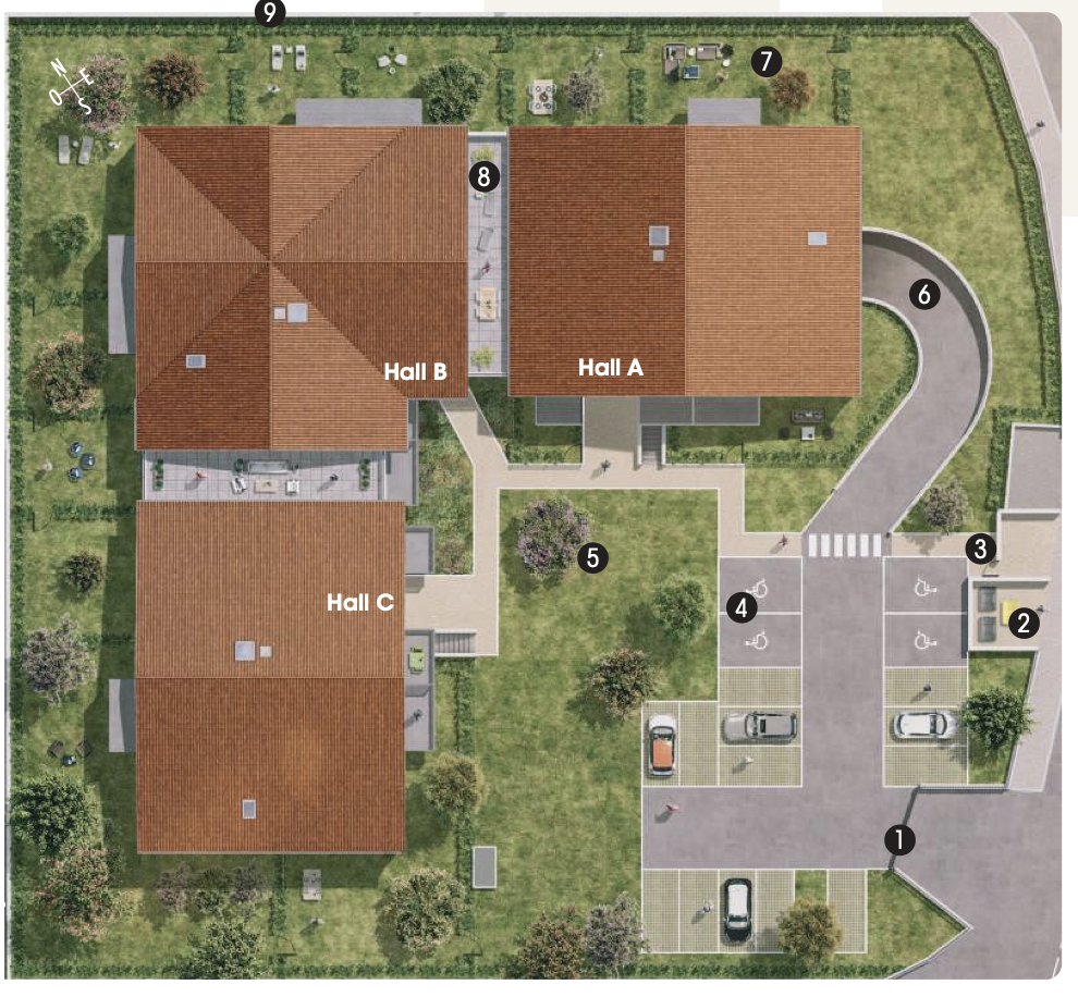 Entièrement clôturée, la Résidence bénéficie d’un parking en sous-sol et aérien pour recevoir des visiteurs.
