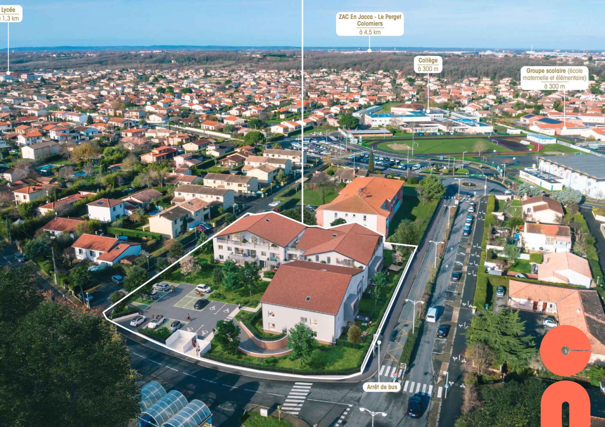 La Résidence se situe dans un quartier calme, pavillonnaire et proche des commodités, offrant la possibilité de tout faire à pied. Épicerie, boulangerie, fromagerie, pharmacie et groupe scolaire (de la maternelle au collège) sont à 2 minutes à pied. La salle de spectacle Le Phare et un centre commercial sont également accessibles en moins de 10 minutes.
