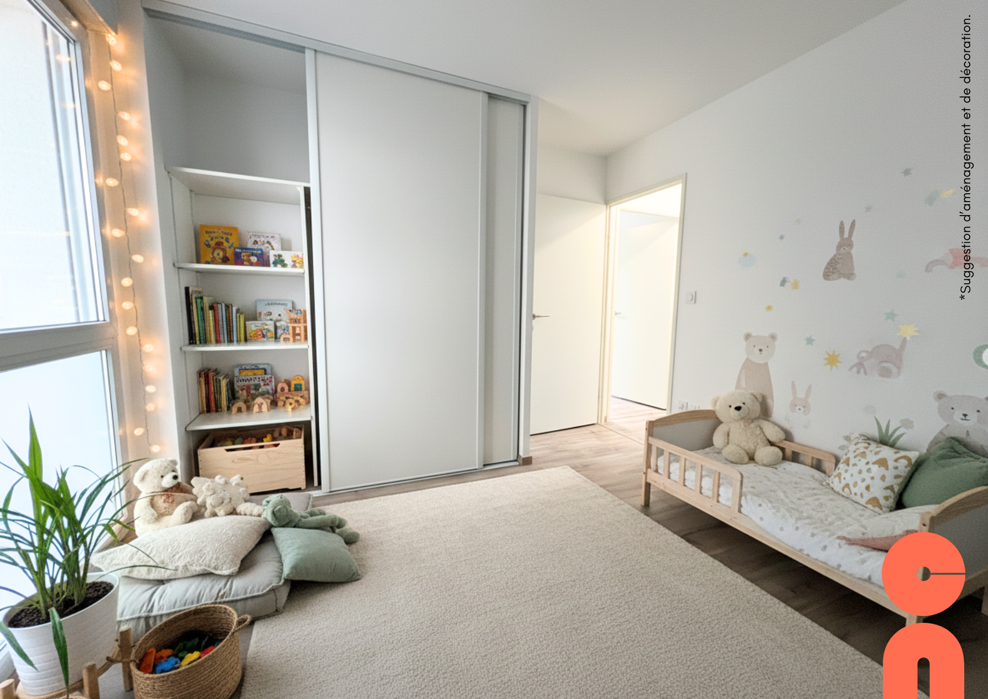 Ce logement, situé en extrémité de bâtiment, bénéficie d’une entrée indépendante et d’une double exposition, garantissant luminosité et intimité.